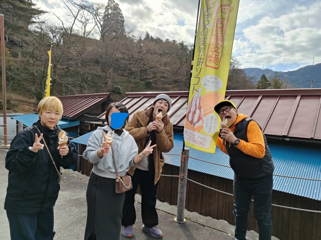 チェックアウト後は、仲間たちととちの実ソフトを食べに行きました。