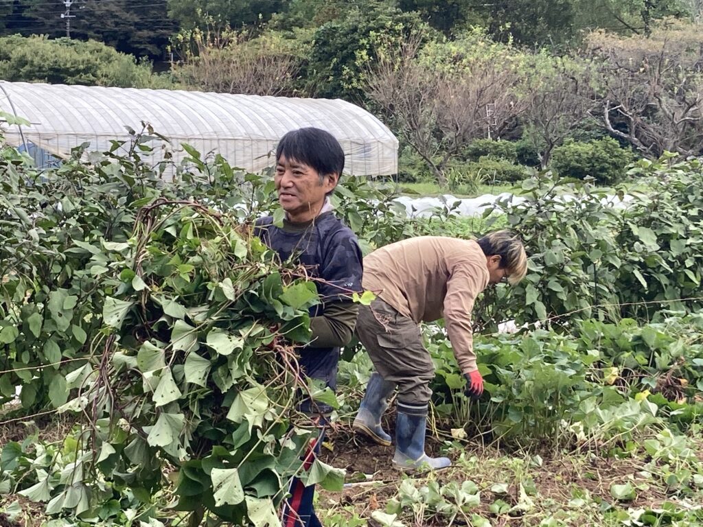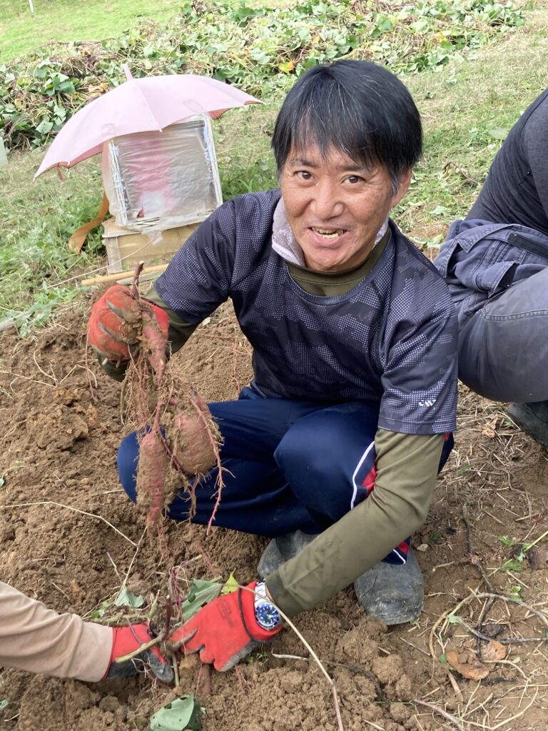 私は仲間がスコップを入れて掘ってくれたあとに、手作業でサツマイモを引き抜く作業を行いました。