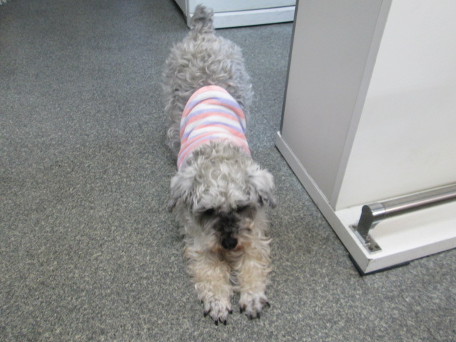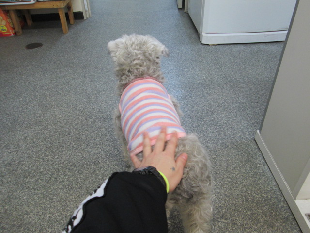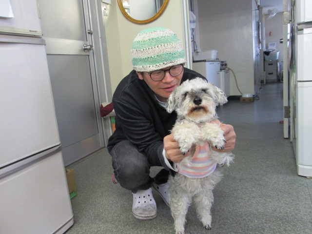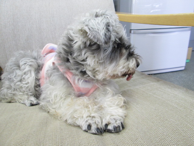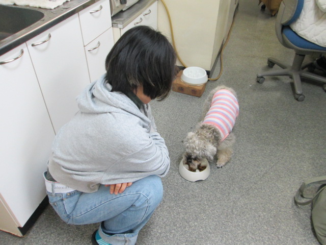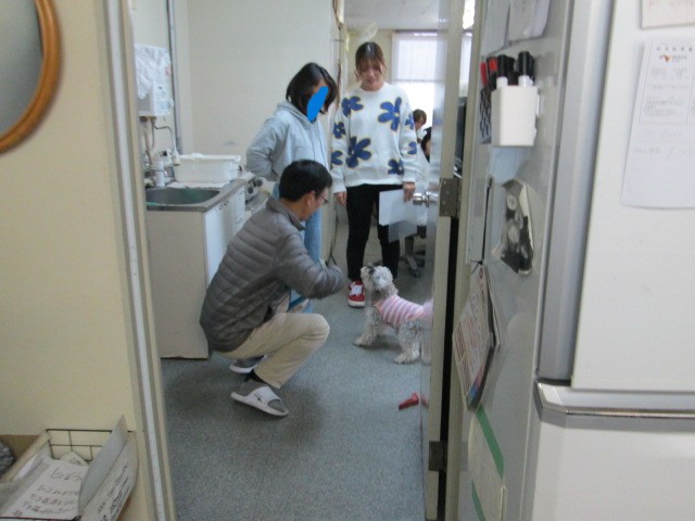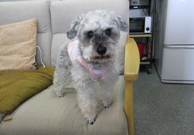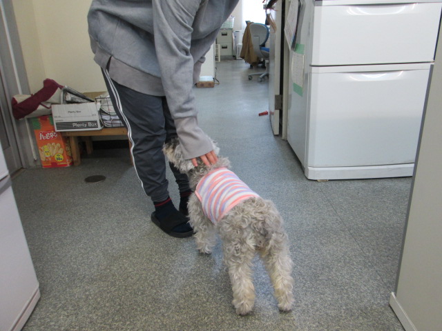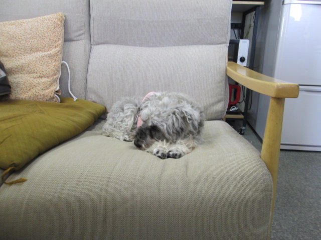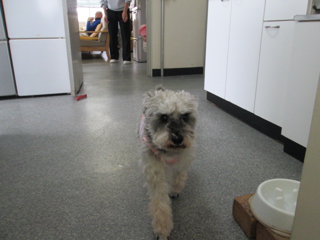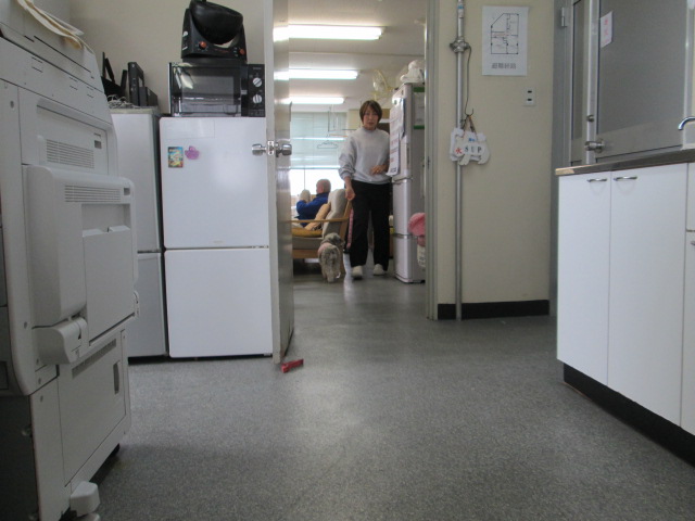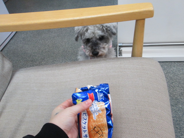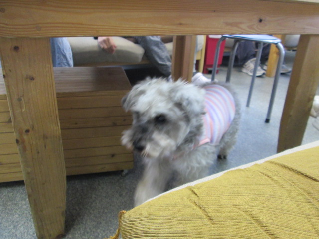 お昼にみんなのおこぼれを探してうろうろするわん。