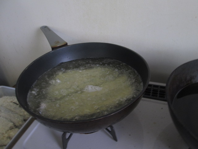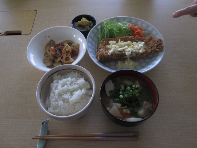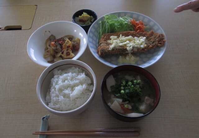 特大のアジフライ、具だくさんの豚汁、きんぴらが出来上がりました。