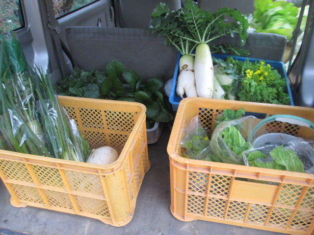他にも野菜など収穫していたようで、車にはどっさりとおいしそうな野菜。