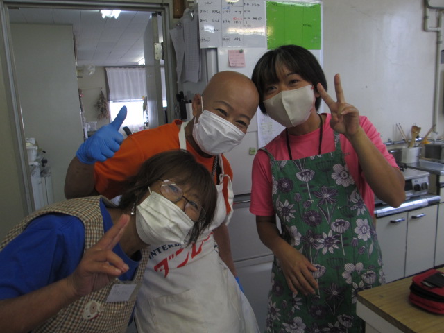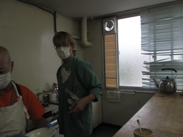 今日は料理プログラムの日、指導の先生に教わりながら仲間達とメニューを作ります。